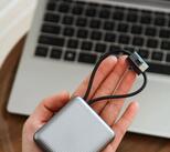 2、自带Type-C+苹果Lightning双线,同时可充3台设备,支持最高22.5W超级快充。