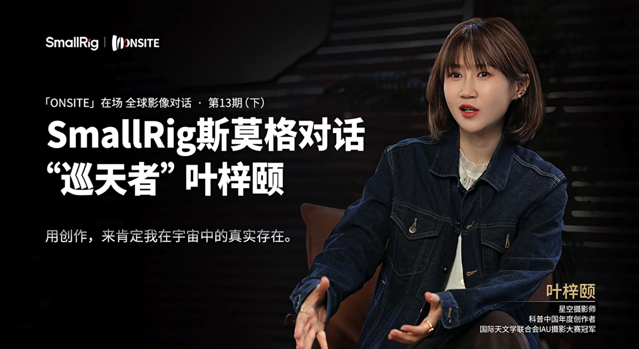 本期《SmallRig在场》特邀主持人邓璐也是一名摄影师,但二人深耕的领域完全不同:邓璐以拍电影为原点,叶梓颐以苍穹为缪斯。双方从采访间聊到咖啡厅,最终以夕阳下的相互拥抱结束,就像卡尔·萨根在《宇宙》中所写:“在广袤的空间和无限的时间中,能与你共享同一颗行星和同一段时光,已是我的荣幸。”内容创作的共通之处,让彼此都能理解对方的创作理念,以及共情彼此经历的艰难困苦。