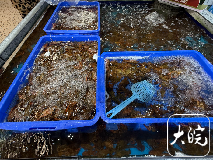 3月9日中午,大皖新闻记者来到合肥市望江西路与合作化南路交口附近一大型生鲜超市,在问及可有小龙虾售卖时,工作人员指引记者来到小龙虾的“专柜”前。眼前的“专柜”其实是一个较大的水池,众多鲜活的小龙虾在水中供消费者挑选。