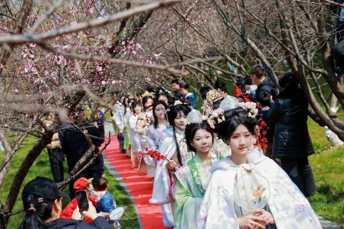 大皖新闻讯 3月8日,合肥八中第四届“庐州雅韵 匡河梅香”梅林诗会在匡河公园浪漫启幕,诗会吸引千余名师生、市民赴约。学校相关负责人表示,这场以梅为媒的文化盛宴,让课堂走出校园,让学子在实景体验中沉浸式感受中华优秀传统文化的魅力。