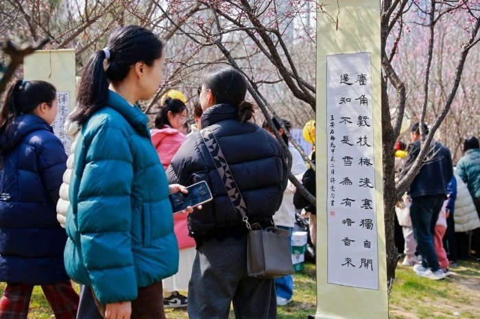 “这是合肥八中举办的第四届梅林诗会活动。”吴锦洋表示,“我们举办该活动是希望能够以梅花为媒介,融合语文、生物、历史、艺术等多学科,让学生在赏梅、识梅、诵梅、画梅、舞梅中沉浸式学习。”学校还联动校地周边资源,辐射蜀山区周边中小学校,与笔架山街道、学林轩社区携手搭建校园与社会的文化互动平台,以自然为课堂,联动周边居民,以诗词为纽带,让教育走出教室,在实景体验中厚植文化自信,让学科知识与本土人文相融共生。