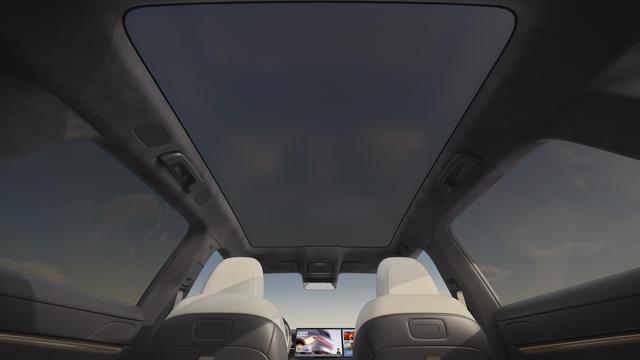 座椅采用Nappa真皮包裹,主驾支持加热、通风、按摩功能;副驾实现14向电动调节,配备电动腿托,靠背可躺至120°,支持大床模式。后排靠背支持10°电动调节,配备左右折叠桌板,舒适与实用兼备。此外,新车搭载10档智能调光天幕,透明与雾态切换小于1秒,采光与隐私一键掌控。