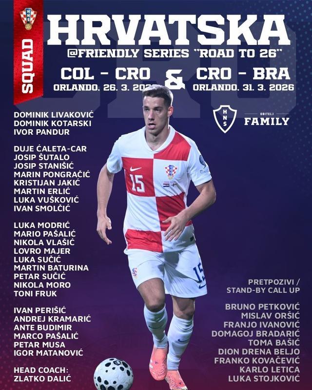 北京时间3月9日,克罗地亚国家队公布了最新一期的大名单,其中莫德里奇领衔,斯塔尼希奇、武什科维奇在列,科瓦契奇、格瓦迪奥尔因伤缺席。
