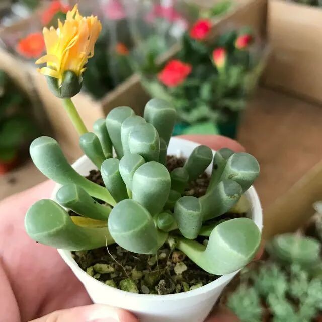 五十铃玉是一种非常可爱的小植物,它的叶片看起来有点像婴儿的脚趾,是非常可爱的多肉植物,非常适合摆放在窗台边养护。