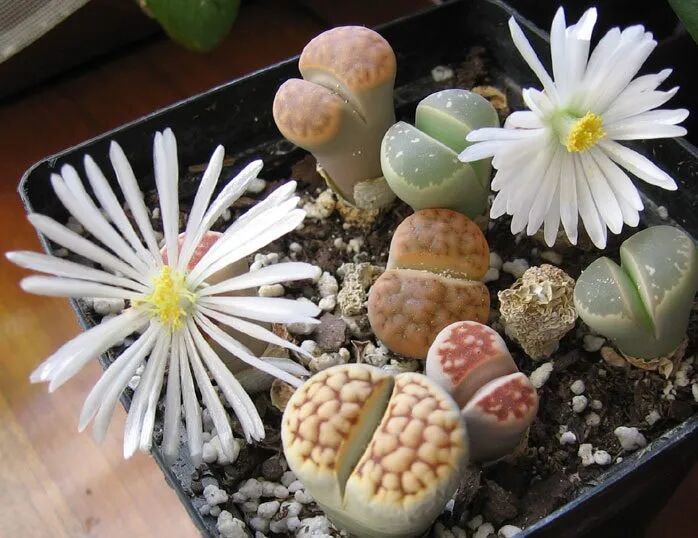 生石花原本生长在荒漠地区的,都是生长在石头堆里的,它们会和石头长在一起,伪装起来避免被吃掉。我们将这种多肉养成盆栽后,也要在土壤里多添加一些颗粒土,土质一定要疏松透气,保证它的根部长得更健壮。养护期间一定要避免经常浇水,它是非常耐干旱的,害怕水多,要保持环境凉爽。