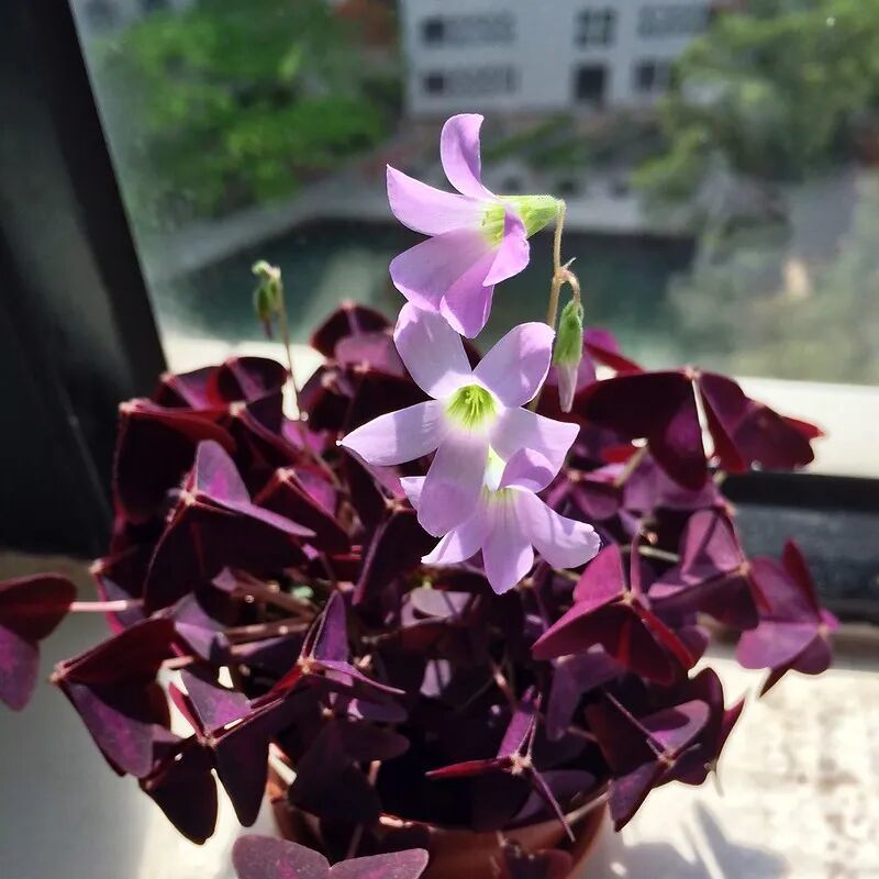 养护紫叶酢浆草一定要选择一些富含腐殖质,有较好排水能力的腐殖土或沙质土,它适合养在有散射光的窗台边,它的叶片在白天时候会展开,夜晚在黑暗的环境下就会闭合。