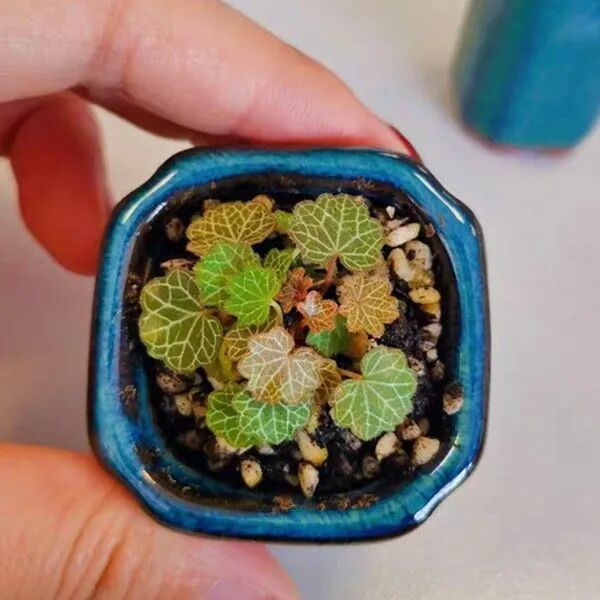 现在很多朋友就喜欢栽种一些园艺培育出来的虎耳草品种,就包括叶子上有一些白色锦边的七变化虎耳草,或者是有红色锦边的御所车虎耳草。另外还有很多喜欢制作微型盆景的朋友,特别喜欢的一个虎耳草品种,那就是姬虎耳草,它的植株极其小巧,就比普通的一毛钱硬币还要小,可以养在特别小的容器里,很适合布置微型植物景观,它也是喜欢高湿度和温暖的环境。