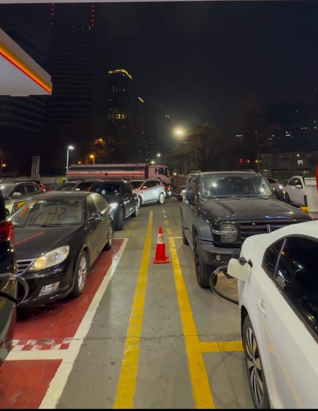 不仅仅这个加油站,9日晚,西安多个加油站加油的队伍都排起了队。