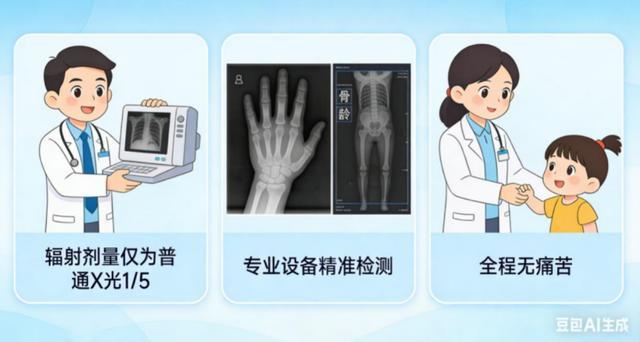 许多家长对“X线”有天然担忧,特别是涉及孩子时。然而,骨龄检查的辐射剂量实际上极低,一次手腕部X光片的辐射量仅为0.0001-0.1 mSv之间,仅相当于生活在自然环境下1-1.5天的本底辐射量。一般只有当年辐射剂量超过100mSv时,才可能对健康产生明显影响。