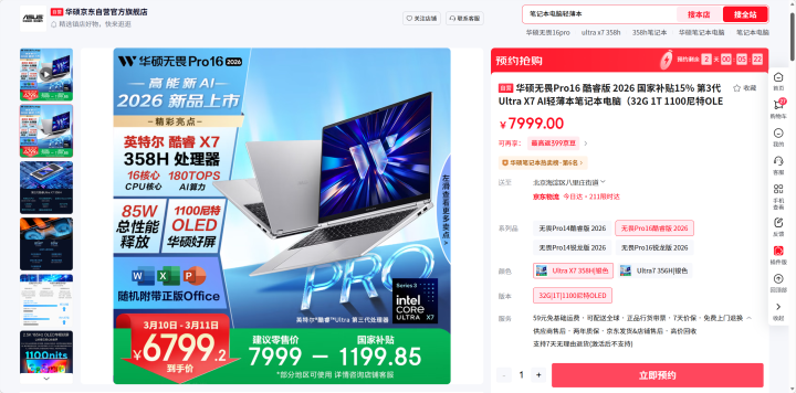 目前华硕无畏Pro16/14 2026酷睿版,两款机型京东华硕自营官方旗舰店现已开售,可享受部分地区国家补贴15%的福利。兼顾办公创作与休闲娱乐的双重需求,是大屏AI轻薄本市场的不二之选,选购价值拉满。