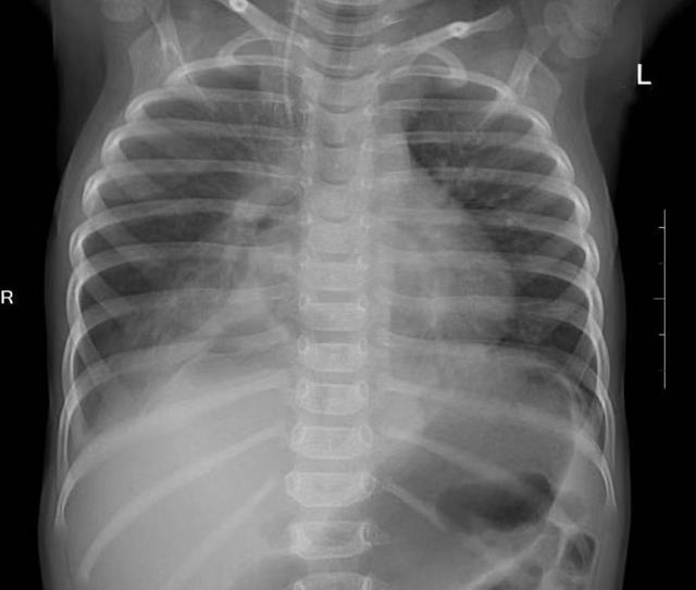 正常情况下,食管穿过膈肌进入腹腔的那个通道,在依依身上变得异常宽大,以至于胃,甚至部分结肠都从这个缺口挤进了胸腔。这不仅导致她吃进去的食物无法正常消化吸收,引起呕吐和营养不良,更严重的是,移位的内脏还压迫了她的右肺,导致肺叶无法充分张开,甚至引发了肺部感染。