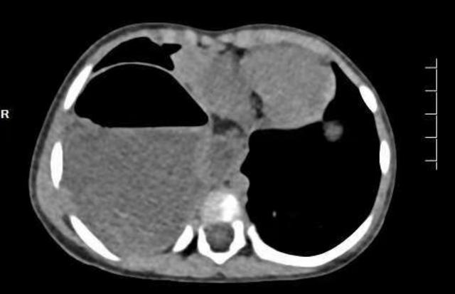这一个多月来,1岁2个月的依依每次吃奶后都会呕吐、腹泻,反反复复不见好。焦急的家人带她到当地医院就诊,为了查清病因,医生为她安排了腹部CT检查。结果却出乎所有人的意料——依依的胃,竟然不在它应该在的腹腔里,而是穿过分隔胸腔和腹腔的肌肉层,“跑”进了右侧胸腔。