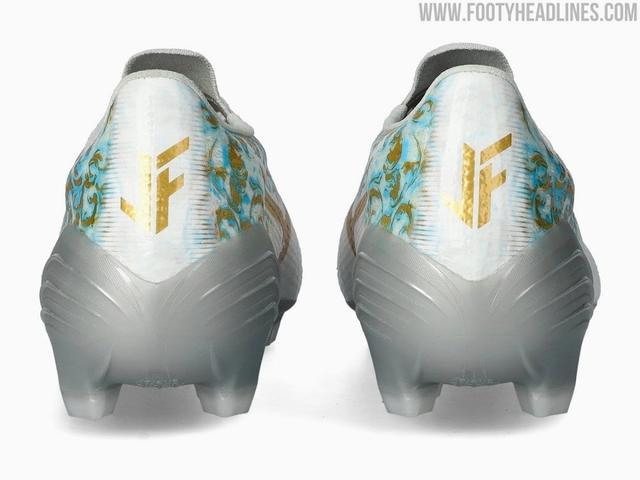 这款定制Logo在全新发布的美津浓Alpha III菲利克斯专属战靴上完成了首秀。它以金属金色醒目地呈现于战靴后跟区域,与白色基底以及蓝金相间的葡萄牙青瓷砖风格图案形成了美妙的对比。