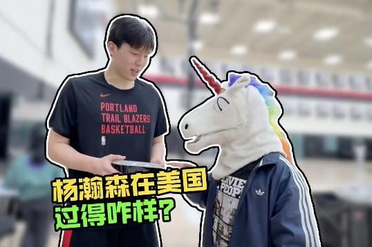 独角兽:真是快乐小羊啊。今天正好呢,就是来看看你一眼。因为好多网友都问我,让我上那个波特兰看看杨瀚森去。我打听了一圈你的队友啥的,他们都挺喜欢你的。