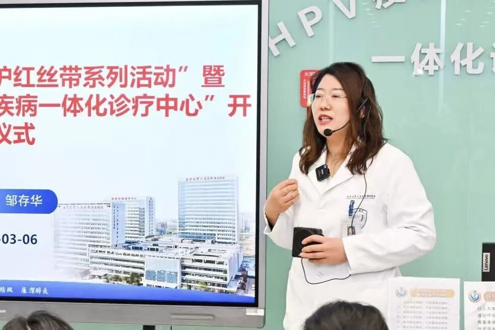 阳春三月,芳华绽放。为迎接三八国际妇女节,守护女性宫颈健康,3月6日,北京大学人民医院青岛医院妇科中心成功举办“女性健康一站式守护红丝带系列活动”暨“HPV疫苗接种及宫颈疾病一体化诊疗中心”开诊仪式。活动现场人气满满,专业的诊疗服务、丰厚的健康福利,为岛城女性送上了一份贴心的健康大礼,也让宫颈健康防护理念深入人心。