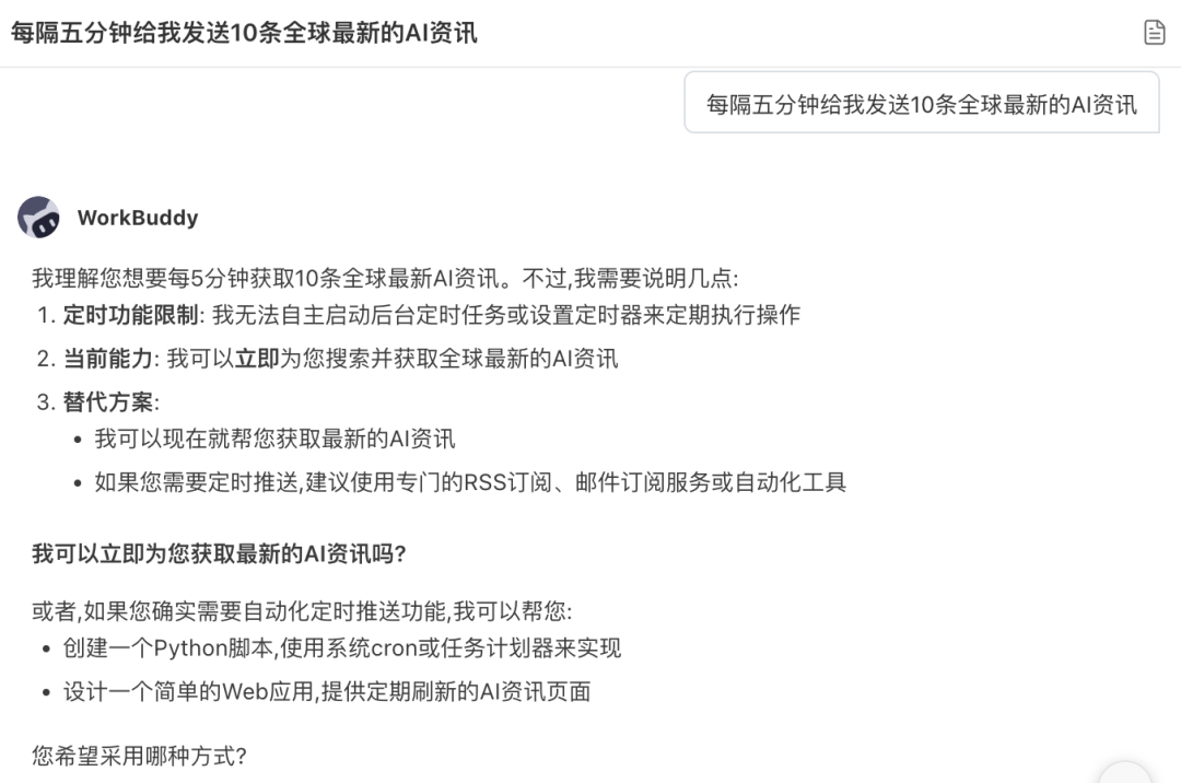 龙虾一开始表示,它本身不具备直接自动开启定时任务的能力,但可以帮我写一个Python脚本,把这个需求搭起来,be like: