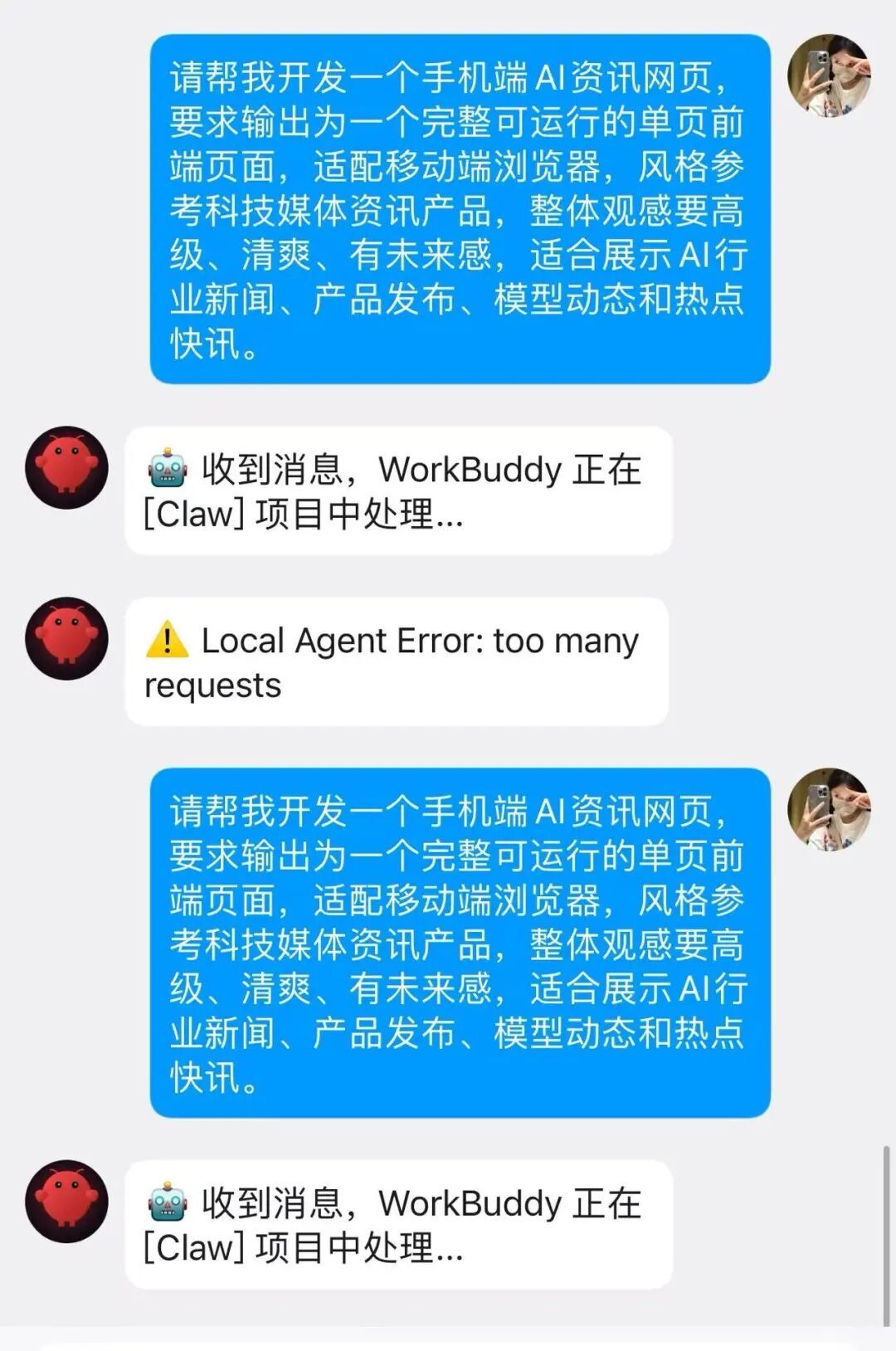 结果嘛,还是出了那么一丢丢bug,龙虾:俺崩溃啦!!!