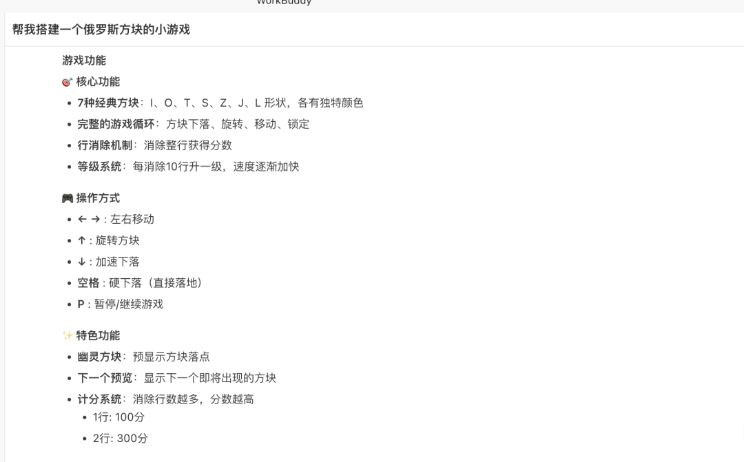 开发一个「俄罗斯方块」小游戏网页,看看它在网页生成这块儿的本事到底如何。