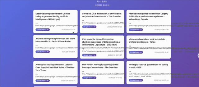 它最后不只是把脚本给出来了,还顺手帮我搭了一个AI资讯网站,这个网站会定时抓取并刷新相关内容,大家看看效果咋样~