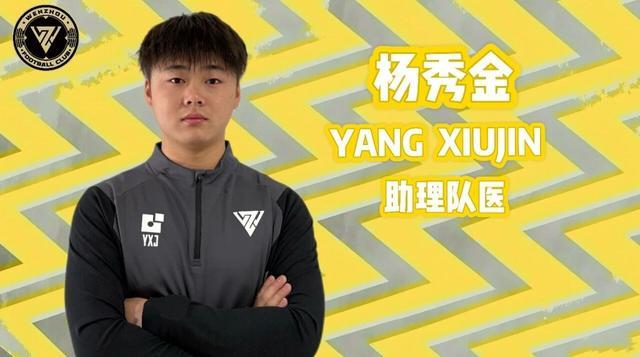 杨秀金,2003年出生,2024年广西平果哈嘹助理队医,2025年全运会广西U18女足队医,2025年温州职业足球俱乐部助理队医、康复治疗师。