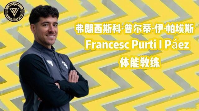 弗朗西斯科-普尔蒂-伊-帕埃斯,1999年出生,西班牙籍。曾在Gimnàstic de Tarragona,CF Gimnastic de Tarragona、UE Cornellá、CF Vilanova、CF Vilafranca担任过体能教练一职。弗朗西斯科熟悉西班牙足球从第三级别到地区联赛的赛事强度与体能需求差异,能精准匹配不同层级球队的训练目标;注重数据化训练管理,善于通过科学监测工具优化训练方案,平衡球员竞技状态与伤病防控。