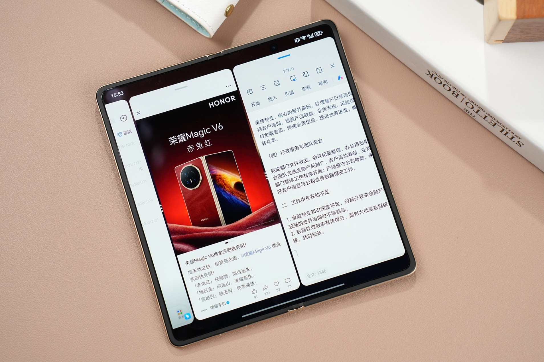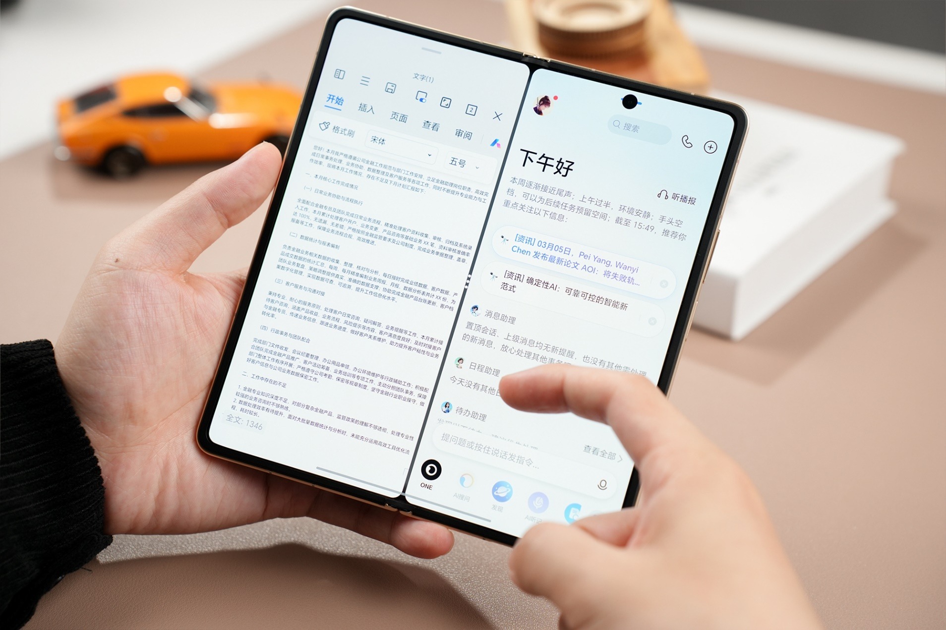 我这几天体验下来,PC级三分屏、AI一屏盯双股功能,以及YOYO帮记2.0、YOYO文档处理、AI情报官、AI会议参谋等AI生产力功能,把折叠屏+AI的生产力属性发挥到极致。从会议记录、文档编辑到信息整合,全方位提升办公效率,真正做到了“续航让你拿得住,体验让你放不下”。