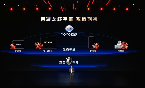据官方介绍,荣耀将支持PC一键“养虾”、平板“养虾”,未来还能兼容其他生态设备的“龙虾”接入。“养虾人”可以通过YOYO在荣耀手机上直接和“小龙虾”交互,并安全地开放手机智能体能力供“小龙虾”调用,实现生态“养虾”,安全“养虾”,和YOYO“养虾”三大能力,相关功能将在近期陆续开放内测。
