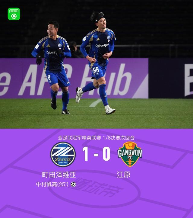 北京时间3月10日亚足联冠军精英联赛1/8决赛次回合,町田泽维亚对阵江原。上半场,罗相镐助攻,中村帆高破门。最终比分町田泽维亚1-0江原。两回合总比分町田泽维亚1-0击败江原晋级亚冠精英赛8强。