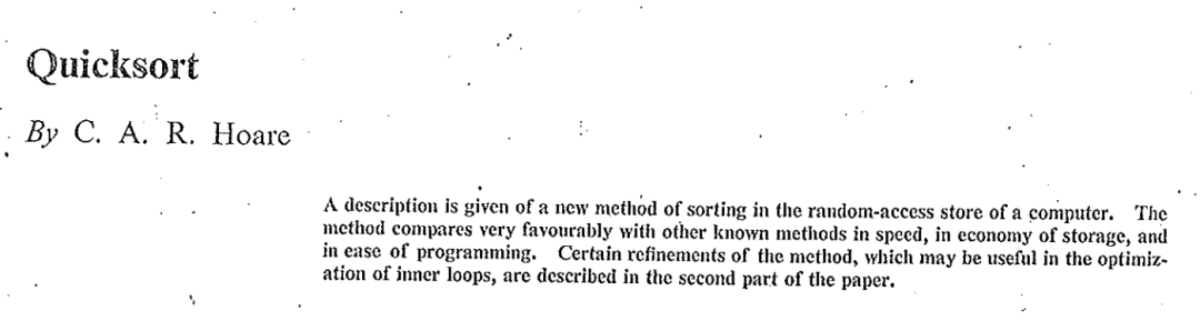 这份代码后来在1962年发表在《计算机杂志》(Computer Journal)上,成了霍尔的第三篇学术论文,也为他此后的学术生涯奠定了基础。