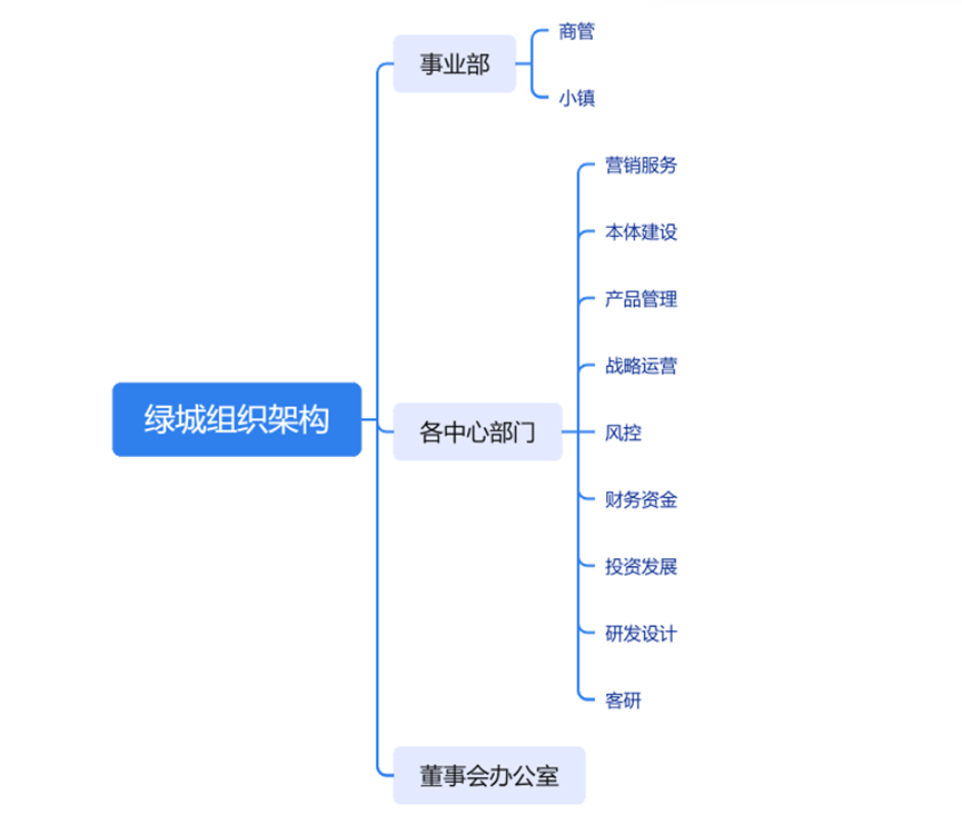 2025年12月,绿城从集团总部到区域公司都进行了调整:组织架构优化调整方面,设立10个中心,2个事业部;紧接着增设风控中心,拆分内部审计、风控法务条线;运营管理中心调整为战略运营中心,将研究院并入运营管理中心。