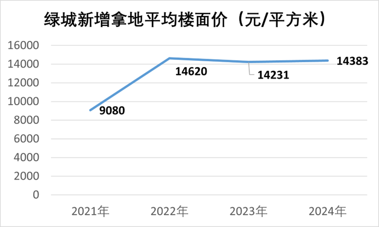 张亚东时期,自2020年开始,绿城高调拿地次数,拿地成本不断上升,从2021年9080元/平方米涨至2024年1.43万元/平方米。