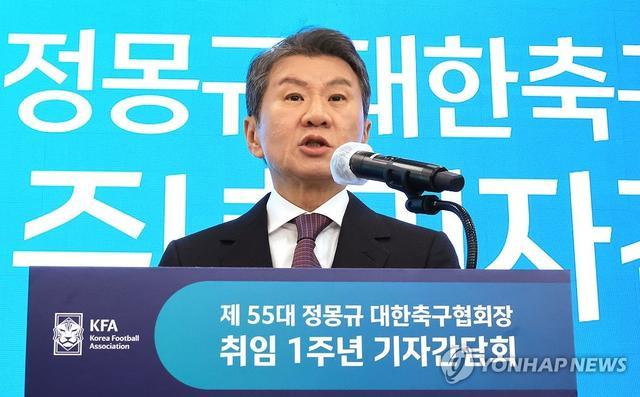 韩国足协主席郑梦奎在就职一周年的新闻发布会上谈到了即将到来的世界杯。