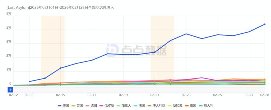 《Last Asylum: Plague》2月收入地区来源趋势.点点数据