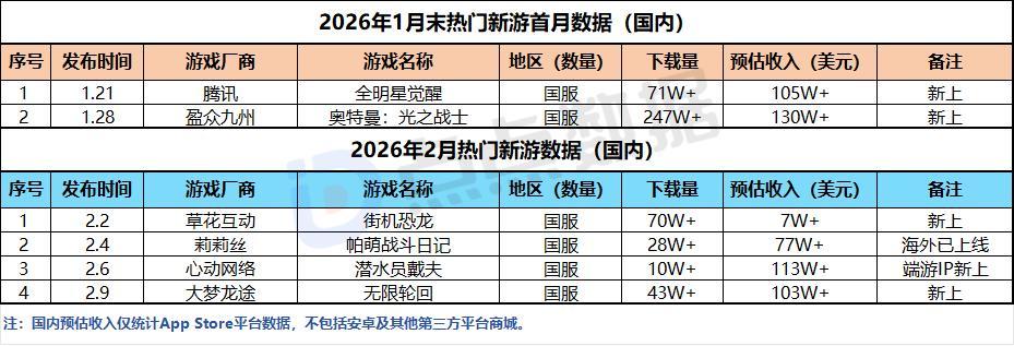 视角回归二月春节档的新游数据。本期仅4款新游数据达到了我们榜单的统计标准。整体数量与数据双降,且单品数据表现相比此前数月的均值亦是降幅明显。在此我们便依旧根据当月收入数据排行依次对上月国内发布的几款产品进行简要分析。