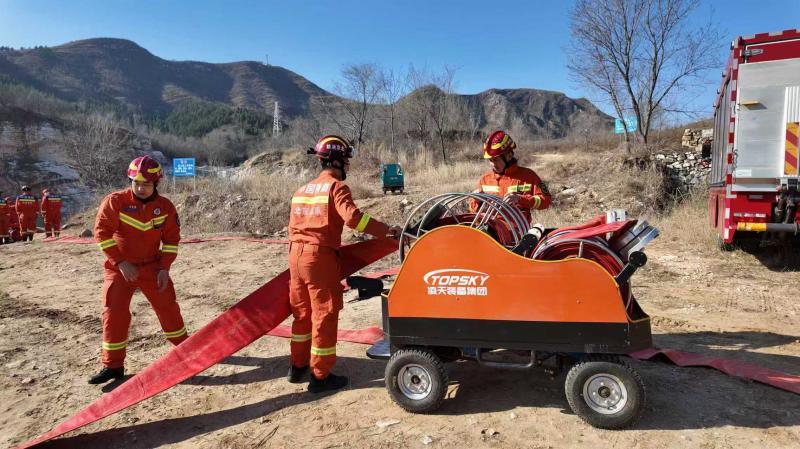 此次演练紧贴实战背景,模拟了山林火灾远距离供水的复杂场景。针对房山区山林地形崎岖、天然水源分布零散的特点,分别设置了五个演练科目:从利用全地形机器人在复杂水域远程抽水,到手抬机动泵在山地间的接力供水;从消防水车向森林消防专用车辆的跨装备输水,到登山铺设水带进行高海拔灭火,最后再到前线通信指挥组网的建立与保障。