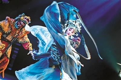 白骨精变装变脸并不只用炫技带来惊奇,而是让技艺融入这一角色的皮、肉、骨。同时,它还有精彩的猴戏,以及孙悟空的武戏文唱、唐僧的文戏武唱等唱做升级。它还很好地展现了戏曲的庄谐相宜,金蝉怪以婺剧丑行程式功法、借鉴高甲戏丑行艺术展现谐趣;猪八戒则以文武小生的功底为观众呈现一个憨态滑稽的喜剧形象,这些都是独属于婺剧《三打白骨精》的魅力。不仅如此,全梁上坝、文武兼备的观赏性,并没有损伤这个观众熟知的故事本体,相反,它情节连贯、情感饱满、高潮迭起。这样的作品,即便主演不是周宏伟、楼胜、杨霞云,只要戏的精彩程度没变,观众走出剧场就一定是满足的。