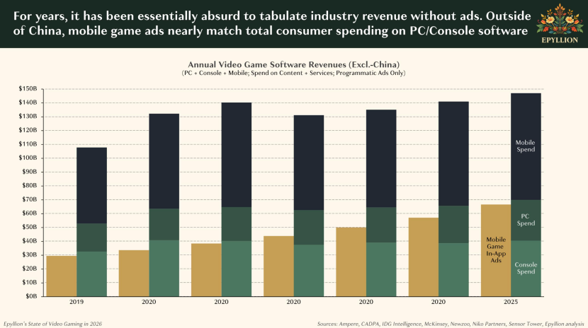 2025年,全球视频游戏市场只增长了5.3%,以100亿美金的增量小幅超越2021年,达到1956亿美金规模。