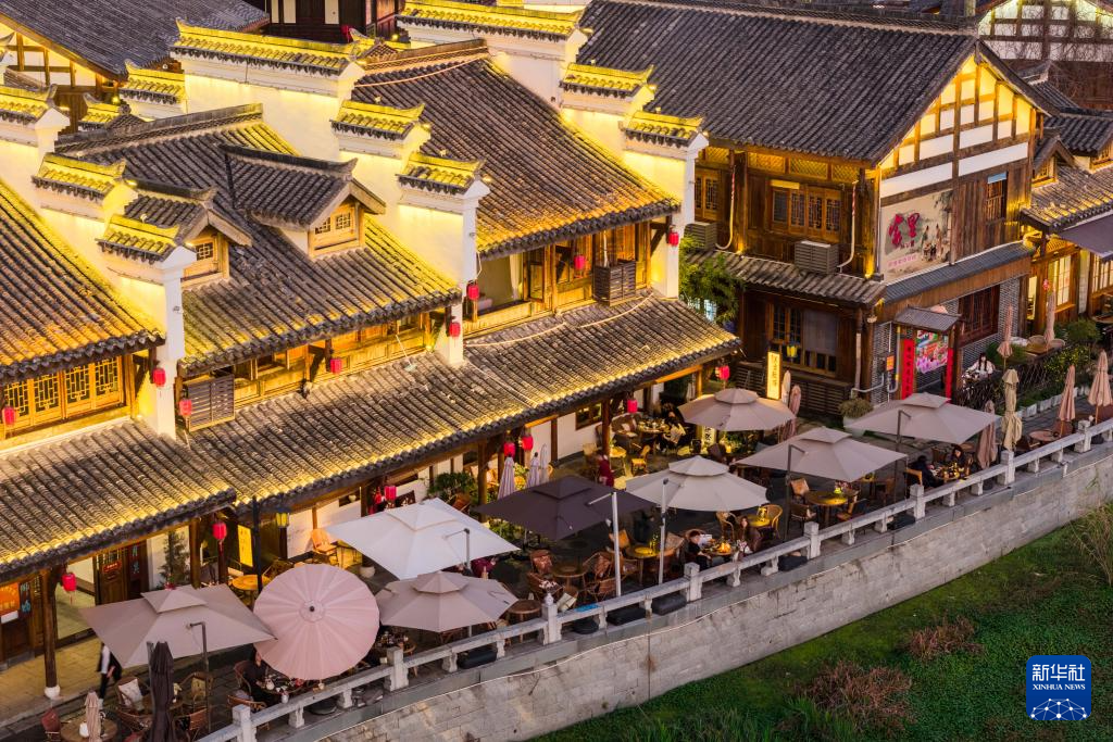 3月11日,游客在穿紫河畔的常德河街用餐。
