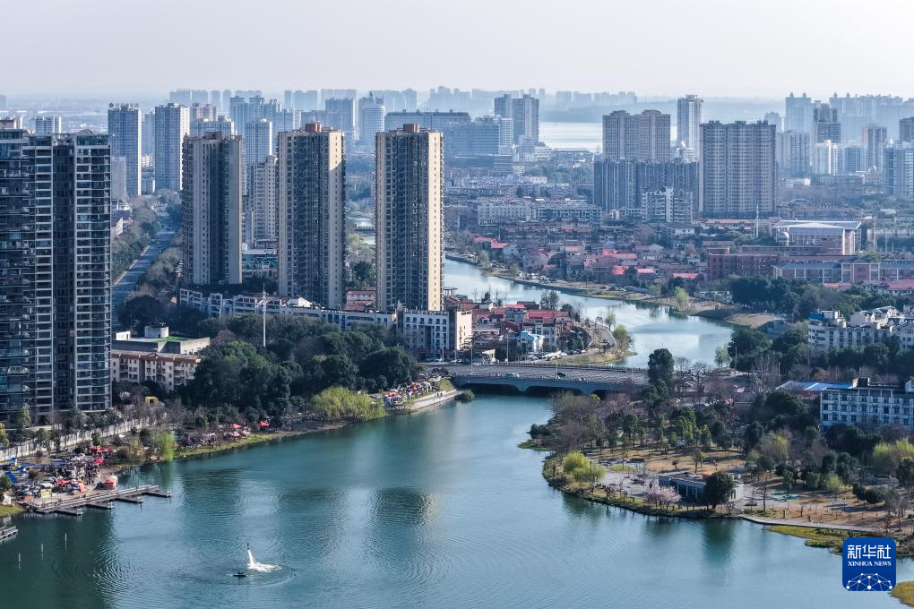 这是3月11日拍摄的穿紫河及岸边城市景色(无人机照片)。