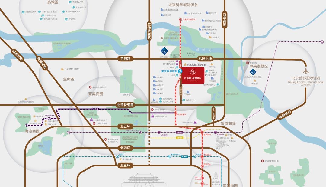 经过16年开发深耕,未来城·星寰时代所在区域,已经成为北京在售新房中“最成熟的1平方公里”——周边先建成了写字楼、商业、公园、学校、地铁,把住宅开发放到了最后兑现,让将来的业主在买房那一刻就能见到未来生活的真实图景: