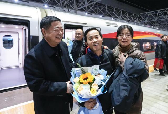 “回来了!终于回来了!”家属们飞奔上前,紧紧拥抱,久久不愿松开。一年的思念,373个日夜的牵挂,在这一刻化作夺眶而出的热泪。有人泣不成声,有人相拥无言,所有的辛苦、担忧与付出,都凝聚在这团圆的瞬间。站台上,鲜花与泪水交织,掌声与问候相融,这一幕,让在场所有人无不动容。