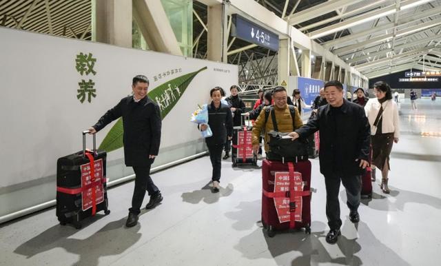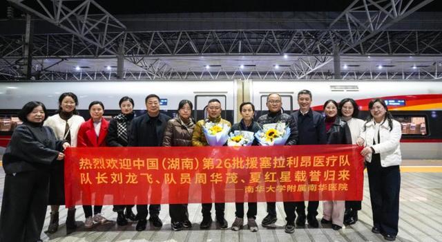 3月8日晚,高铁衡阳东站站台上,一群特殊的“等候者”翘首以盼——南华大学附属南华医院党委书记周玉生、院长贺军带队,援非干部家属、相关领导和职能部门负责人一行,手捧鲜花、拉起横幅,静静等待着那趟承载着光荣与思念的列车。