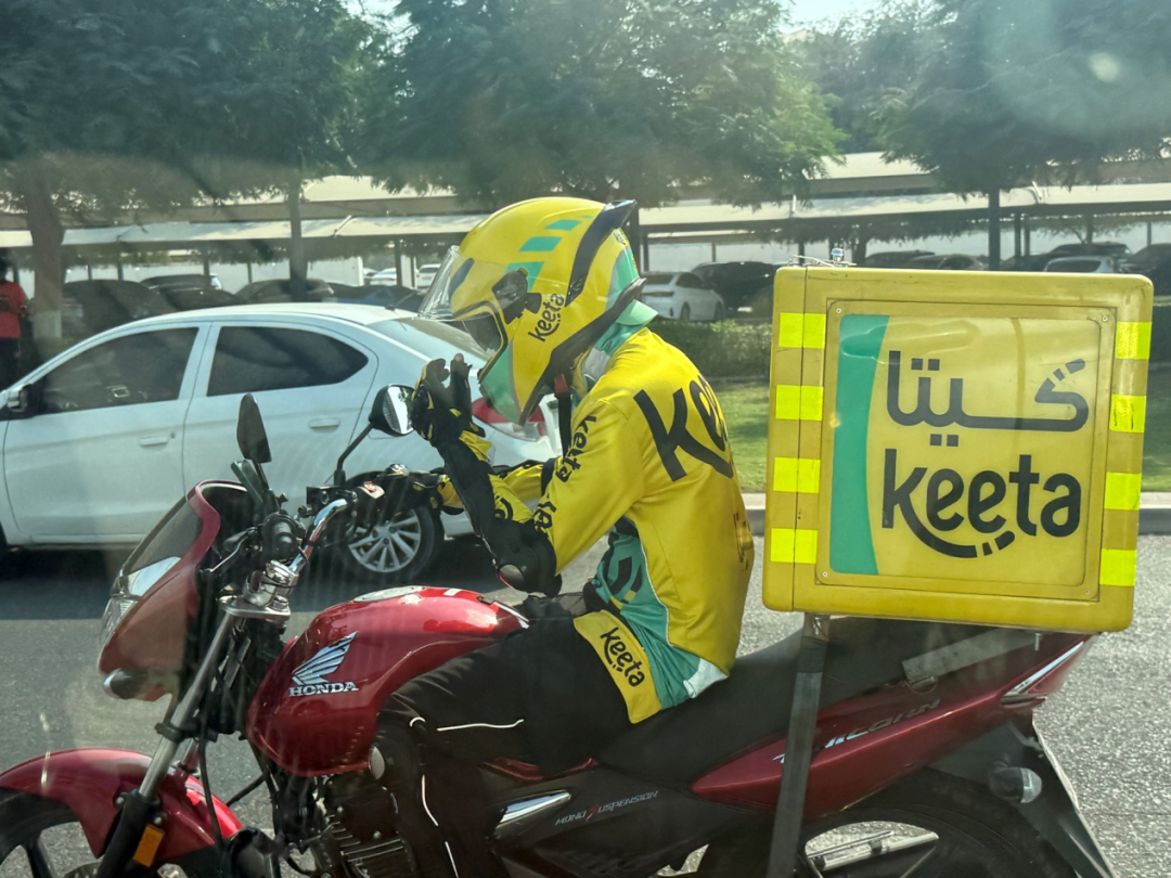 没错,这是美团在中东的外卖配送平台Keeta的外卖小哥。