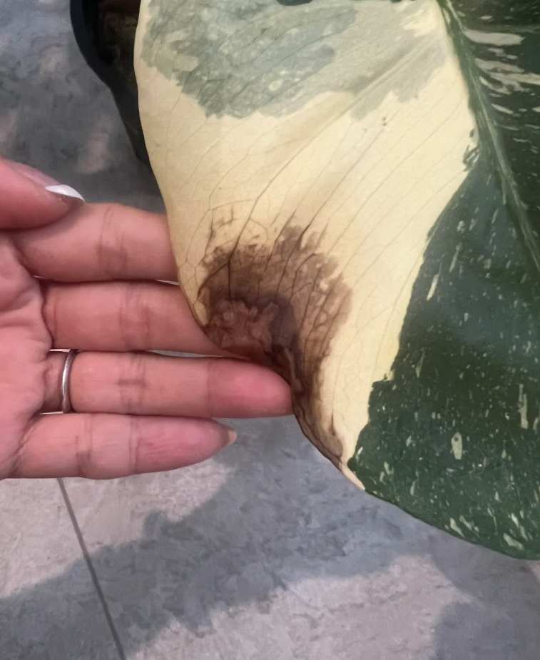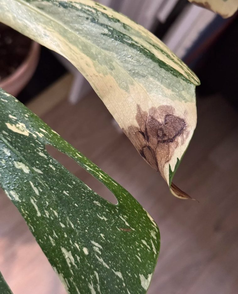 和普通叶子翠绿的龟背竹不一样,只要是花叶龟背竹,包括洒金龟背竹和白锦龟背竹,都是因为叶片上缺失一些叶绿素,所以更容易出现叶子焦边的情况。