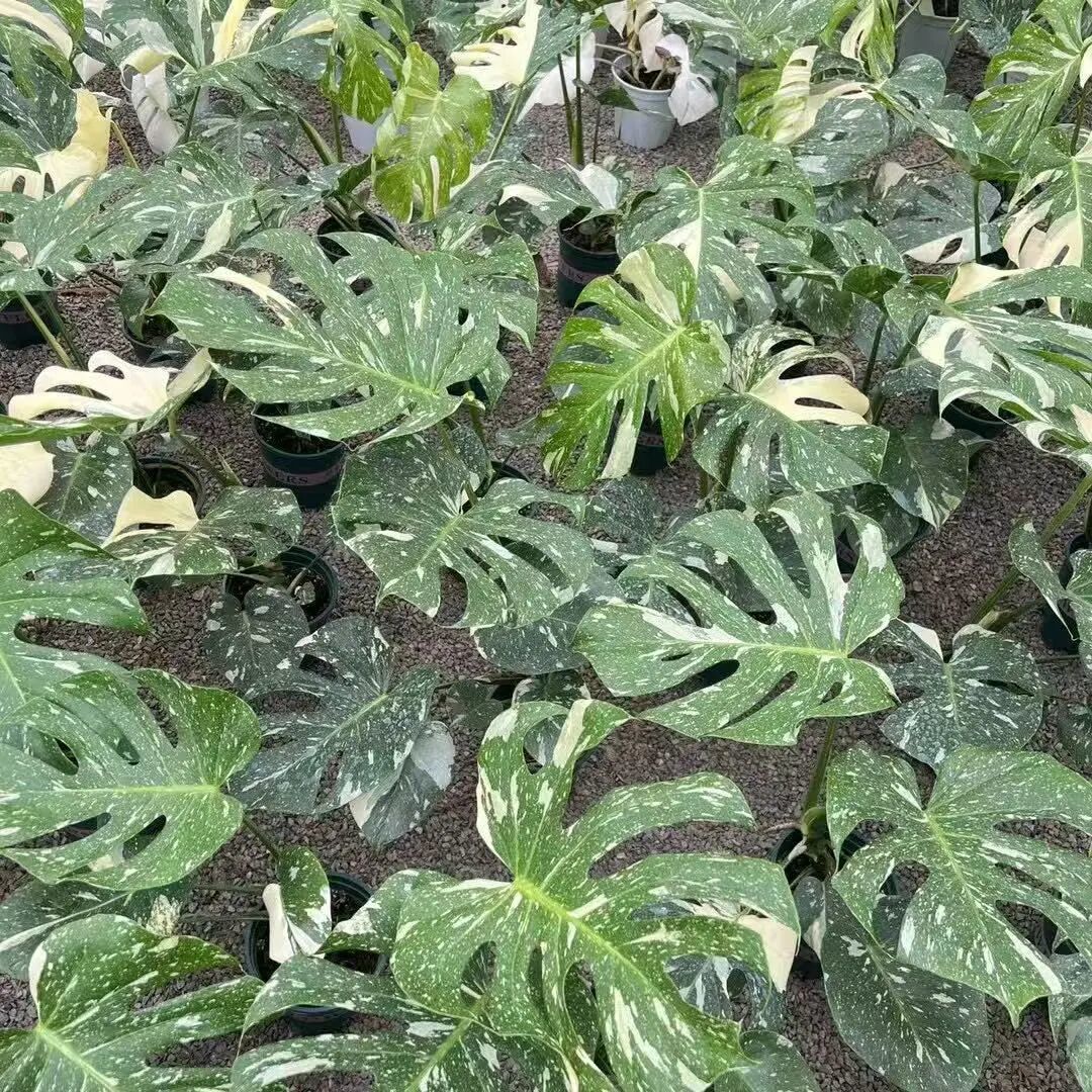 像上面这种开背的洒金龟背竹盆栽苗,30~50一盆都可以到手了,往年没有上百都不行。