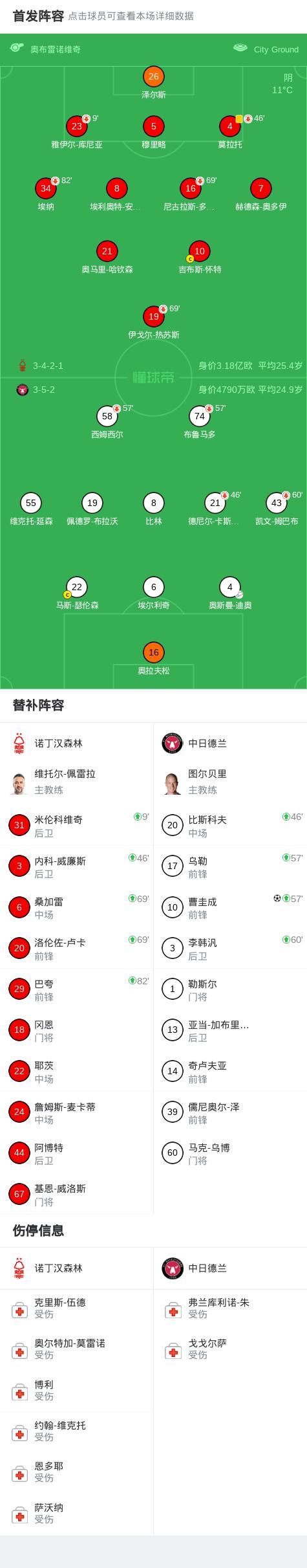 北京时间3月13日欧足联欧洲联赛 1/8决赛首回合,诺丁汉森林对阵中日德兰。中日德兰曹圭成破门。最终比分诺丁汉森林 0-1 中日德兰。