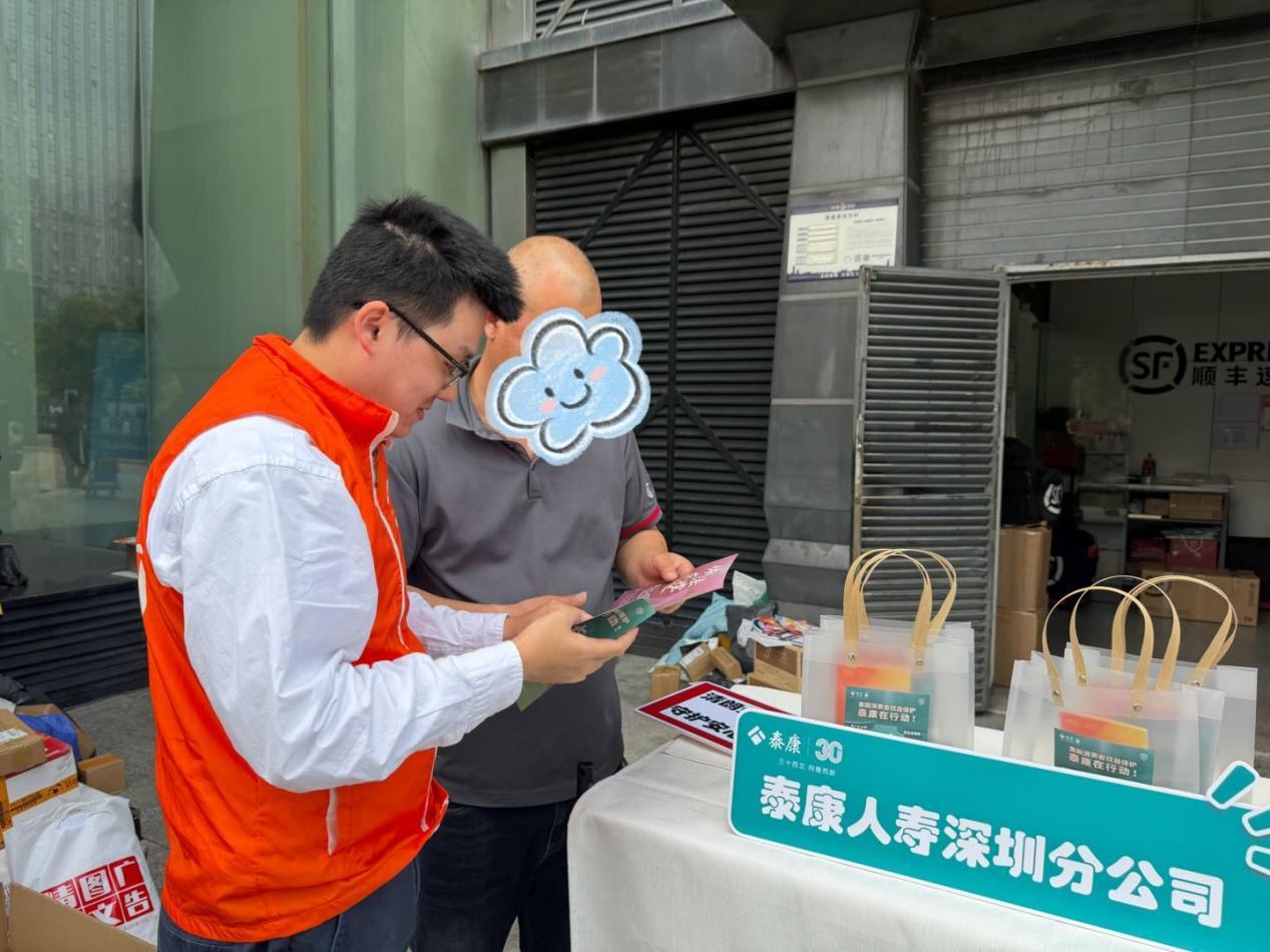 3月9日,泰康人寿深圳分公司开展“精准提示进万家,金融风险防到家”金融消保宣传活动,走进社区快递驿站,将金融安全知识送到快递配送一线。