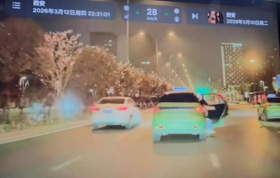 3月12日晚,网友发布视频称,晚10点20分许,西安一出租车正行驶时,有人从车上跳了下来。