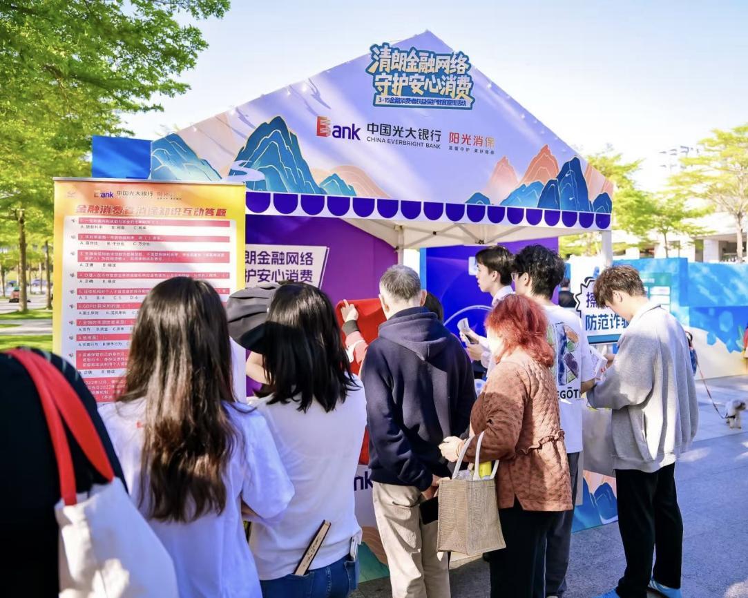 光大银行深圳分行相关负责人表示,将牢牢把握金融工作的政治性、人民性,以本次“3·15”金融消费者权益保护教育宣传活动为契机,通过持续举办多渠道、多样式的金融知识教育宣传活动,全力擦亮“阳光消保”服务品牌,持续扩大金融知识普及教育的覆盖面。