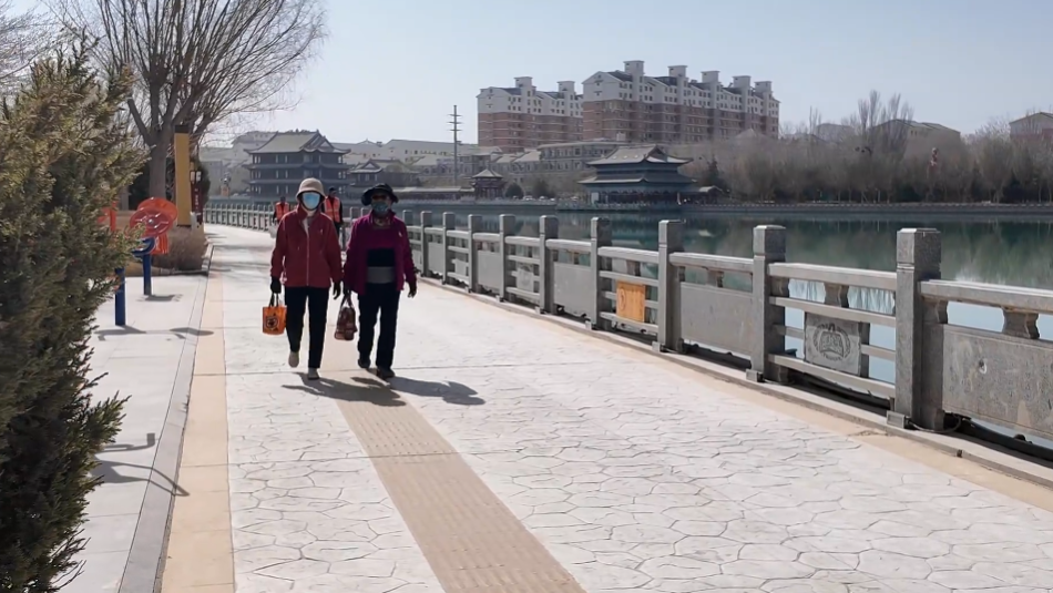市民殷雪芬说:“春天到了,风情线的水也放上了,环境也好,我们出来在这坐一坐晒个太阳挺好,现在确实环境好,卫生也干净。”